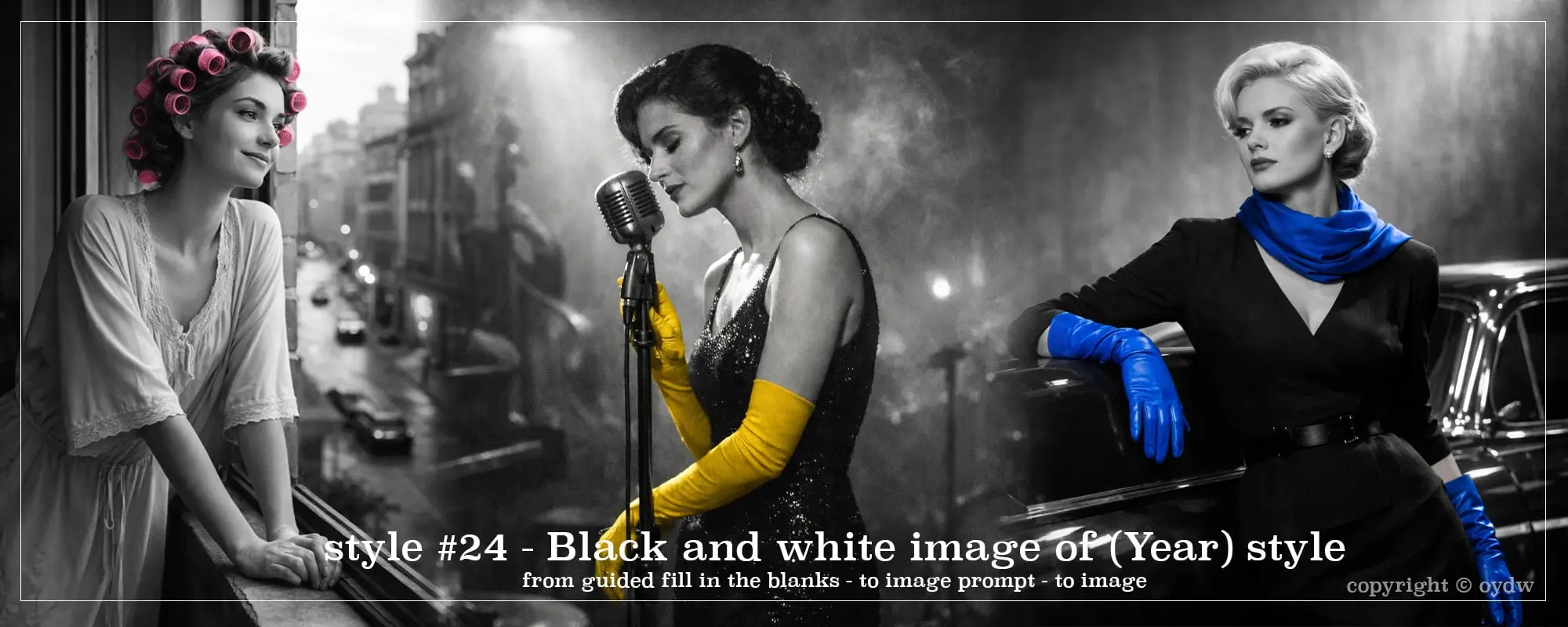 Enter the style number, answer a few quick prompts, and it builds an enhanced image prompt for you. - Not sure which style to use?